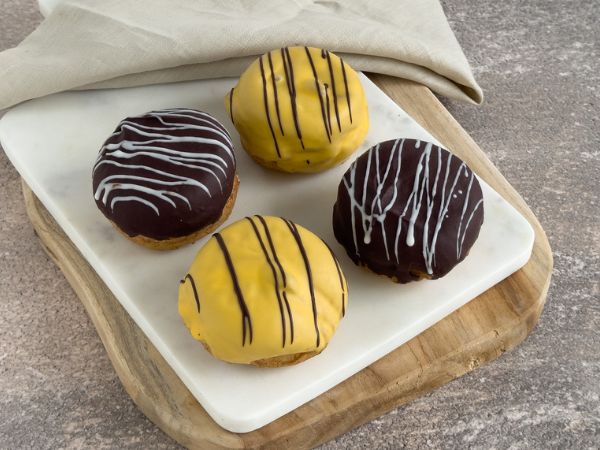 Twee weken lang verkrijgbaar in onze winkels: Een heerlijke combinatie van luchtige soes met banaan- of chocola smaak.